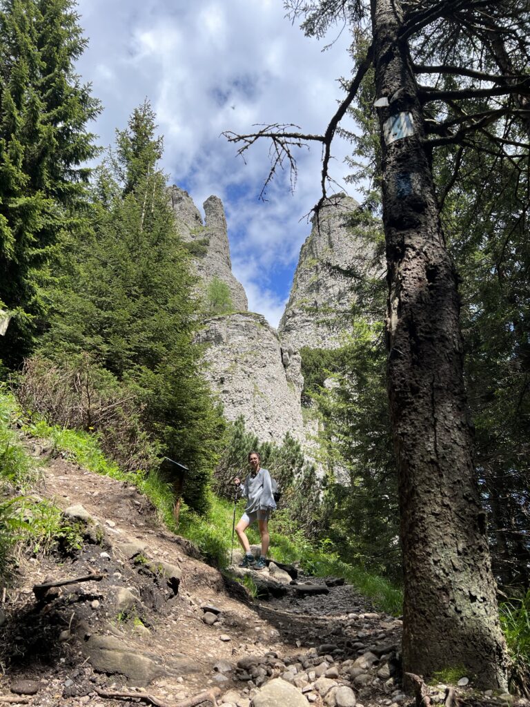 - Poiana Stănilelor – La Cruce: Urmează o porțiune mai abruptă, unde urci cu adevărat. Ceahlăul își arată cu adevărat fața aici. Rădăcinile de copaci sunt adâncite în pământ și de multe ori te vei sprijini de ele pentru a-ți lua avânt. Timpul pare să curgă altfel la această altitudine.